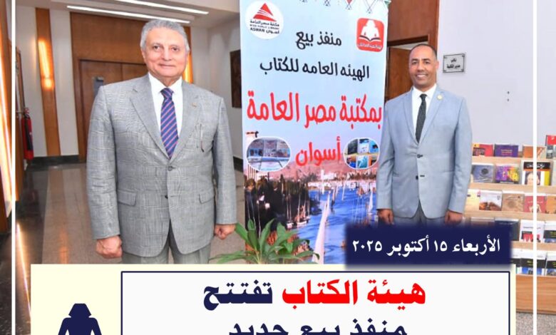 افتتاح منفذ لبيع إصدارات هيئة الكتاب بمكتبة مصر العامة في أسوان ضمن خطة نشر الثقافة في المحافظات.