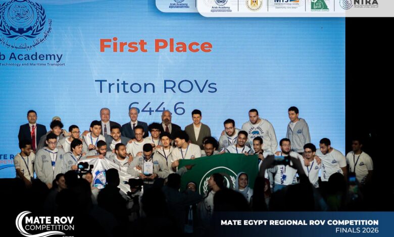 حقق فريق “Triton” التابع للأكاديمية العربية للعلوم والتكنولوجيا والنقل البحري إنجازاً علمياً جديداً باقتناصه المركز الأول للمرة الثانية على التوالي في المسابقة الإقليمية للغواصات الآلية البحرية (ROV)، ليعلن رسمياً تمثيله للأكاديمية ومصر في النهائيات الدولية المقرر إقامتها في كندا.
