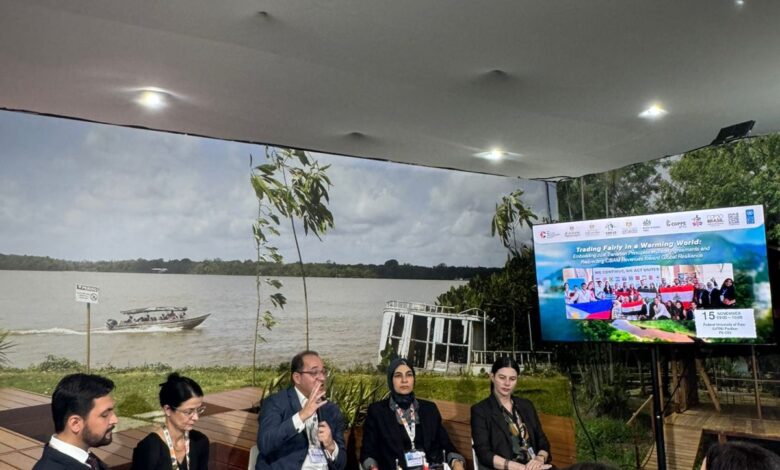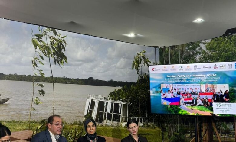 وقد ركزت الجلسة – التي تم تنظيمها في يوم التمويل – موضوعات محورية شملت التجارة العادلة في عالم يزداد حرارة، وسبل دمج مبادئ الانتقال العادل في النظم الاقتصادية، وإعادة التفكير في كيفية توجيه الإيرادات العالمية – مثل آلية تعديل الكربون على الحدود (CBAM) – نحو تعزيز الصمود وتحقيق العدالة المناخية.