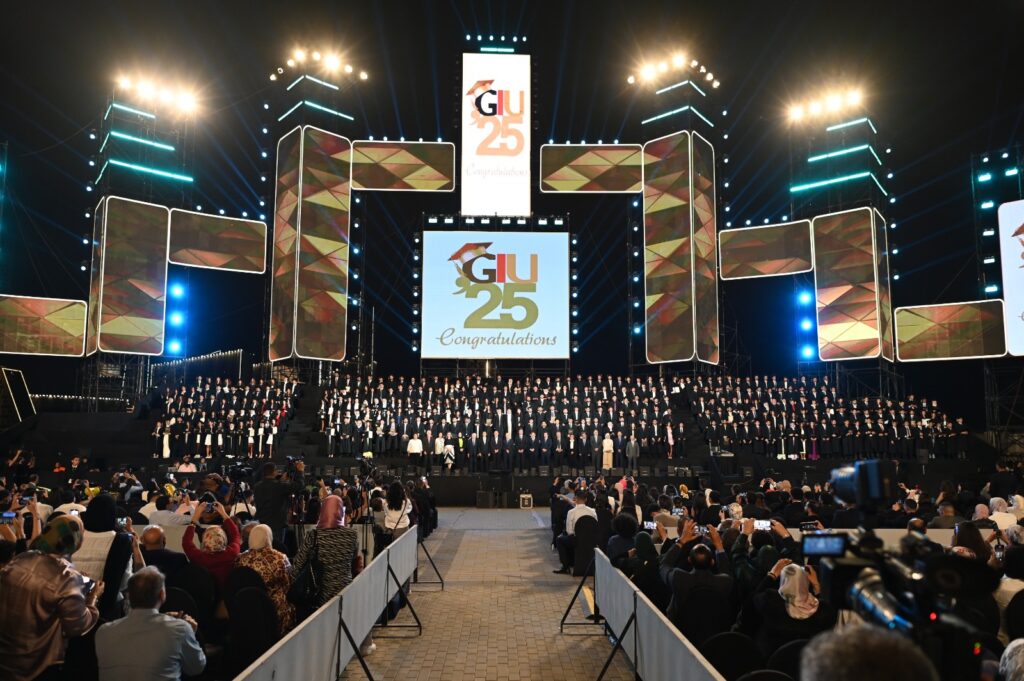 وأكد أن ما تعلمه الخريجون في GIU لا يقتصر على اكتساب المعرفة الأكاديمية، بل يمتد ليشمل القدرة على اتخاذ القرار، وتحمل المسؤولية، وتحقيق الأهداف المشتركة بوعي وانضباط ، داعياً اياهم بالحفاظ على فضولهم العلمي وروح التساؤل فهما المحرك الأول للإبداع، مؤكدًا أن أفضل الحلول تنشأ حين يجرؤ الإنسان على طرح الأسئلة ومراجعة الأفكار السائدة.
