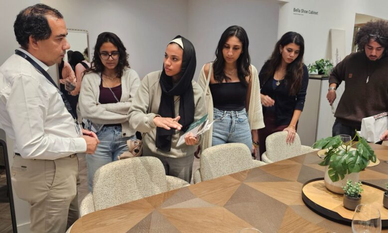 وحول زيارة احدي اكبر شركات الأثاث المصرية قال ان الزيارة كانت لمصانعها بمدينة بدر وأيضا لمعرضها بالقاهرة، وذلك للاطلاع على أحدث الاتجاهات في تصميم وتنفيذ الأثاث، والتفاعل مع المتخصصين في المجال، مما أتاح لطلاب البرنامج مقارنة الأساليب المختلفة في التصميم والتصنيع وتعزيز فهمهم لتقنيات الإنتاج المختلفة وهو ما استهدفته أيضا زيارتنا لاحد المعارض المتخصصة بقطاع الأثاث وهو يُعدّ أكبر وأهم معارض للأثاث والديكور في مصر والشرق الأوسط؛ حيث يجمع تحت سقفه أحدث اتجاهات الأثاث، الخامات، ومعالجات التصميم الداخلي من عارضين محليين ودوليين، ويتيح للزوار وطلاب التصميم فرصة مشاهدة التصميمات العصرية والتقنيات الحديثة في صناعة الأثاث وتشكيلات متنوعة من الأثاث والتصميم الداخلي، والاهم التعرف علي كيفية عرض المنتجات في سوق تنافسي.