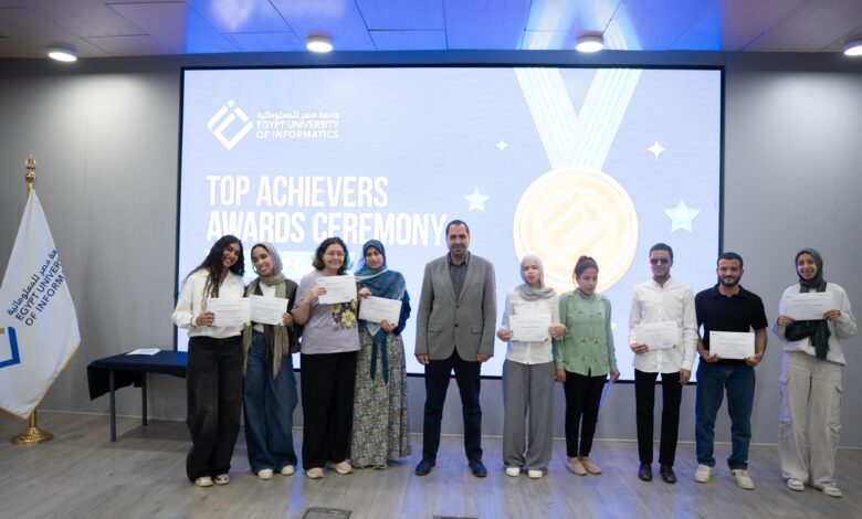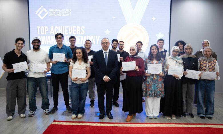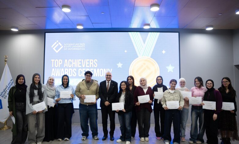 كرمت جامعة مصر للمعلوماتية 72 طالب وطالبة أوائل الفرق الدراسية المختلفة بكلياتها الأربع وذلك خلال احتفالها بيوم المتفوقين في الفصل الدراسي الأول للعام الدراسي 2025/2026، وأقيم الاحتفال بمقر الجامعة في مدينة المعرفة بالعاصمة الإدارية الجديدة.