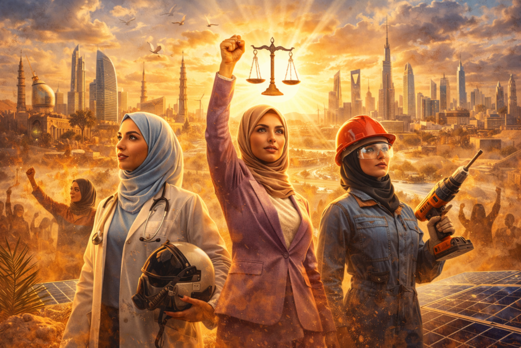 • في الخليج: نرى مشهداً مهيباً؛ المرأة السعودية والإماراتية تقتحم قطاعات الفضاء، والتقنية، والإعلام. لم يعد عملها “خياراً ثانوياً”، بل أصبح ركيزة في بناء الاقتصاد الجديد. لكن هذا الصعود يأتي مع “ضريبة مضاعفة”؛ فهي مطالبة بالنجاح في العمل دون أن يختل “نظام البيت”، مما يضعها تحت ضغط نفسي هائل يسمى “الكمال المستحيل”.