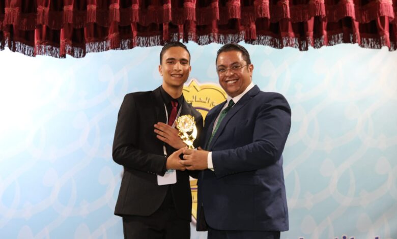 تكريم الطالب يوسف الشاذلي الفائز بمسابقة تصميم أفضل لوجو لقطاع الأنشطة الطلابية.
