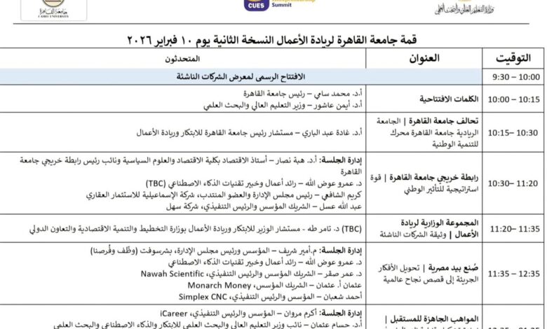 جامعة القاهرة تستعد لانطلاق النسخة الثانية من قمة ريادة الأعمال لتعزيز الابتكار ودعم الشركات الناشئة
