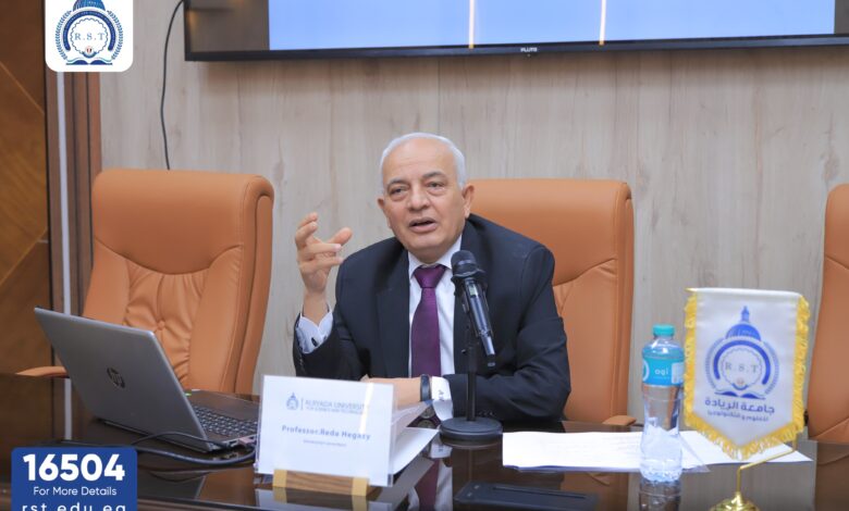 واصلت جامعة الريادة للعلوم والتكنولوجيا RST تنفيذ برامج رفع كفاءة قدرات اعضاء هيئة التدريس في ضوء الاستراتيجية الوطنية لوزارة التعليم العالي تحت رعاية الدكتور يحيي مبروك رئيس مجلس الامناء والأستاذ الدكتور رضا حجازي رئيس الجامعة.