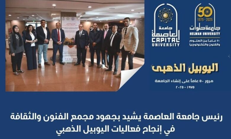 وجه الدكتور السيد قنديل رئيس جامعة العاصمة الشكر والتقدير إلى “مجمع الفنون والثقافة” على جهودهم المتميزة في تنظيم واستضافة وإنجاح فعاليات اليوبيل الذهبي لجامعة حلوان، مؤكدًا أن هذا الإنجاز يعكس الدور الريادي للمجمع في دعم الحركة الثقافية والفنية داخل الجامعة وخارجها.
