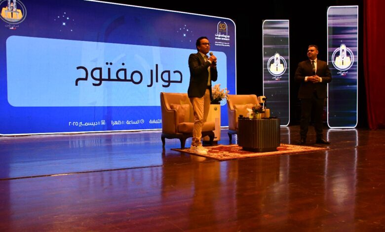 من جانبه، أعرب الفنان سامح حسين عن سعادته البالغة بالتواجد بين طلاب جامعة حلوان، مؤكدًا أن الفن رسالة إنسانية، وأن الفنان الحقيقي يحمل على عاتقه مسؤولية التعبير عن الناس وقضاياهم. وقال: “الفن قادر على تغيير الواقع وصناعة وعي جديد، لأنه يصل إلى القلوب مباشرة، ويعكس مشاعر الناس وآمالهم. وأنا سعيد أن أشارك طلاب جامعة حلوان هذا الحوار، لأنهم يمثلون المستقبل الذي سيحمل راية الإبداع والوعي في المجتمع.”
