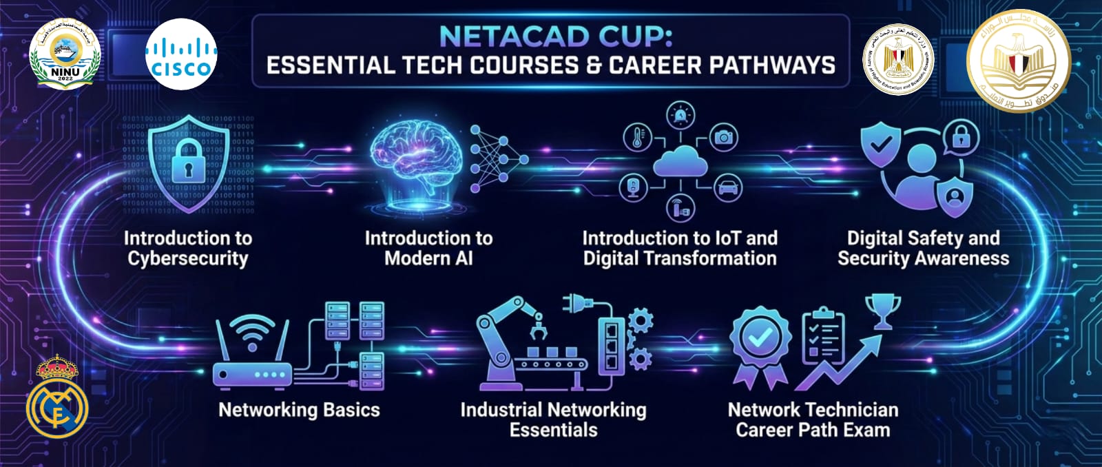 يمكن للطلاب الالتحاق بالدورات التالية، وهي مجانية 100% مع شهادات دولية معتمدة عند اجتياز كل دورة: التسجيل على موقع Cisco Networking Academy من خلال الرابط