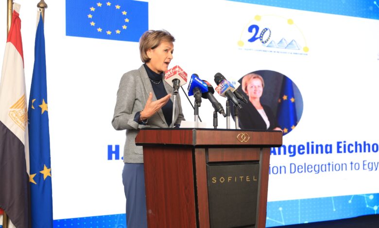 ومن جانبها، أكدت السفيرة أنجلينا أيخهورست أن هذا التجمع يعكس عمق الشراكة الإستراتيجية التي تجمع بين مصر والاتحاد الأوروبي، والتي أثمرت عن أكثر من 300 مشروع تعاون ناجح في مجالات الصحة والمناخ والطاقة المتجددة ومعالجة المياه، بما يدعم التنمية ويعزز الابتكار ويقدّم حلولًا فعّالة للتحديات المشتركة، مثمنة مشاركة مئات الباحثين المصريين في هذه المشروعات، مؤكدة أن تبادل الخبرات بين الجانبين يمثل حجر الزاوية لهذه الشراكة المتنامية.