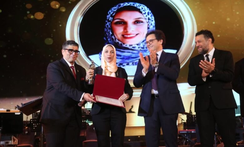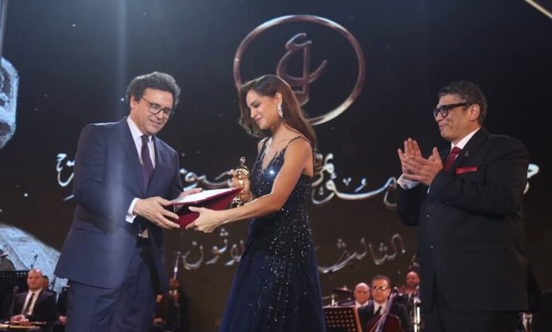 كما صعد وزير الثقافة إلى خشبة المسرح لتكريم الصوت المصري الأصيل آمال ماهر خلال فقرتها الفنية في حفل الافتتاح، كونها أحد سفراء الفن المصري.