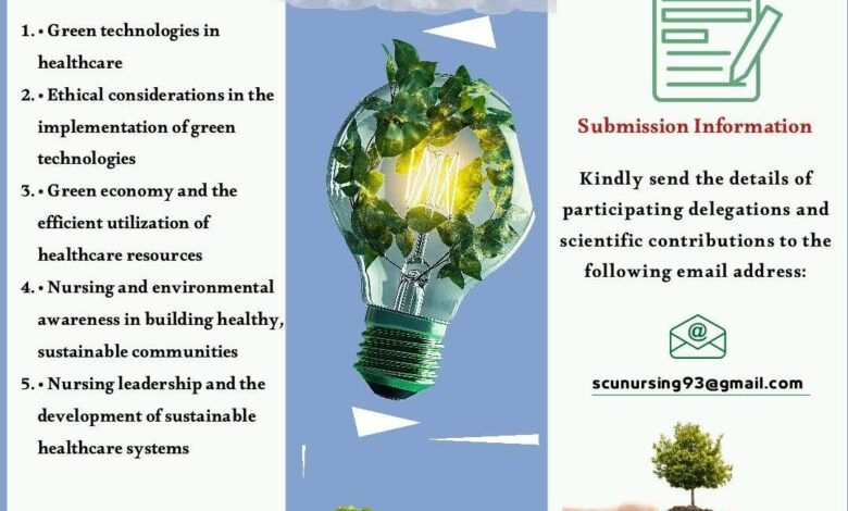 كما يناقش دور التمريض في التوعية البيئية وبناء مجتمعات خضراء، وأهمية القيادة التمريضية في دعم نظم الرعاية الصحية المستدامة، بما يعكس التوجه العالمي نحو دمج مفاهيم الاستدامة البيئية داخل المنظومات الصحية والتعليمية.ودعت إدارة المؤتمر الوفود والباحثين والطلاب الراغبين في المشاركة إلى إرسال بياناتهم ومساهماتهم العلمية عبر البريد الإلكتروني الرسمي للمؤتمر، في إطار توسيع قاعدة المشاركة العلمية وتبادل الخبرات بما يسهم في دعم البحث العلمي الطلابي وتعزيز دوره في تطوير قطاع الرعاية الصحية المستدامة.